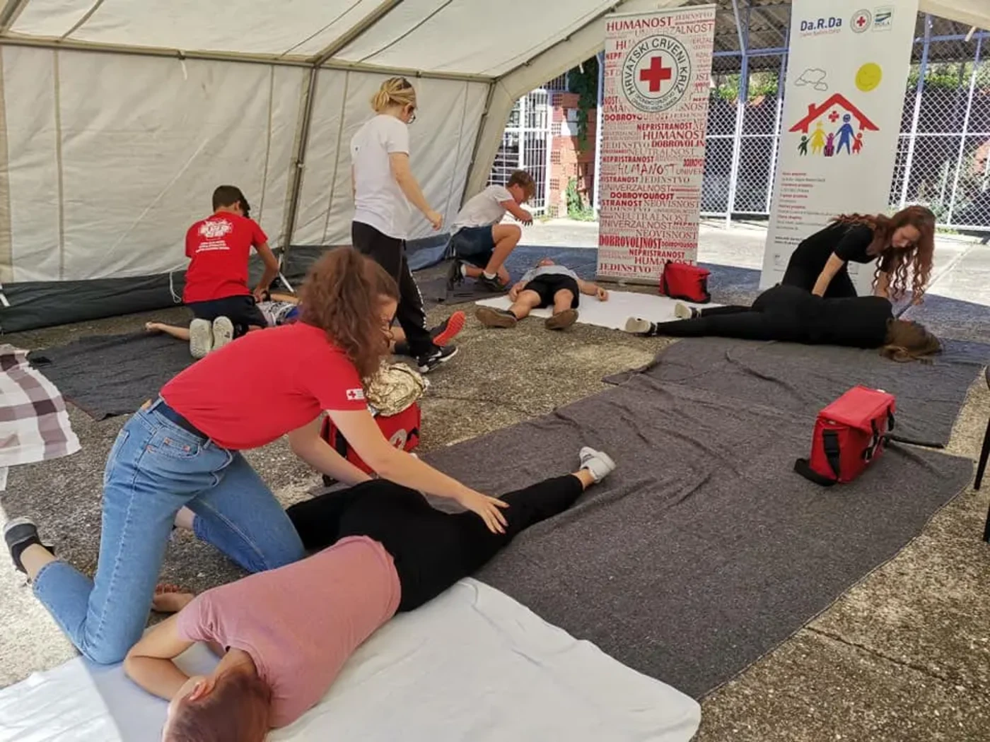 06. rujna smo na otvorenome uspješno odradili radionicu prve pomoći za naše mlade sudionike projekta Da.R.Da – Dajmo Radost Dardi. Cilj ovakvih radionica je obučavanje mladih kako bi u svakom trenutku mogli pružiti prvu pomoć kome god je potrebna. Prva pomoć jedna je od najstarijih djelatnosti Crvenog križa, a kako pravilno zaustaviti krvarenje i pružiti neodgodive postupke prve pomoći, pokazat će nam naši sudionici i volonteri Kluba mladih na pokaznoj vježbi 13. rujna s početkom u 10 sati na rukometnom igralištu na Đoli. 💪❤️🥰🤩 #SvjetskiDanPrvePomoci #PrvaPomoc #HCK #CrveniKrizDarda #EdukacijeMladih