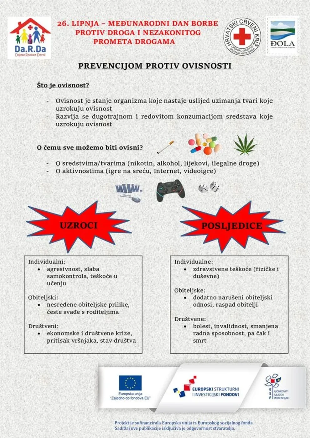 Nakon edukativnog dijela, gdje su naši sudionici projekta Da.R.Da – Dajmo Radost Dardi imali priliku upoznati se s prevencijom ovisnosti, izradili su informativni letak o prevenciji ovisnosti o drogama. 💖💪💞 #PrevencijaOvisnosti #BoljeSprijecitiNegoLijeciti