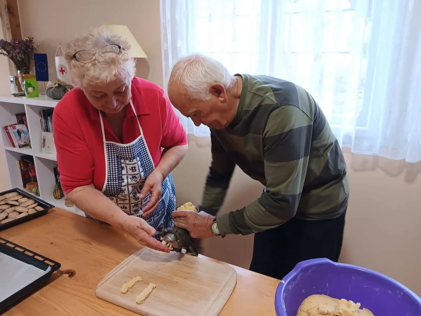U Dnevnom boravku za starije osobe Crvenog križa Darda, naše drage bake Cvijeta i Vida zamirisale naše prostorije mirisom svježe pečenih bakinih keksića na mašinu, šapa s orasima i medenjaka. Pečenjem bakinih kolača pridružili smo se udrugama i drugim organizacijama koje sudjeluju u pripremama za 2. Advent župe Darda jer ljubav se naljepše zrcali u zajedništvu. Ove bezvremenske klasike moći će te kušati na štandu s kolačima. Navedena aktivnost u Dnevnom boravku za starije osobe provodi se u sklopu projekta Socijalnim uključivanjem do aktivnog starenja, koji je sufinanciran sredstvima Ministarstva rada, mirovinskog sustava, obitelji i socijalne politike.