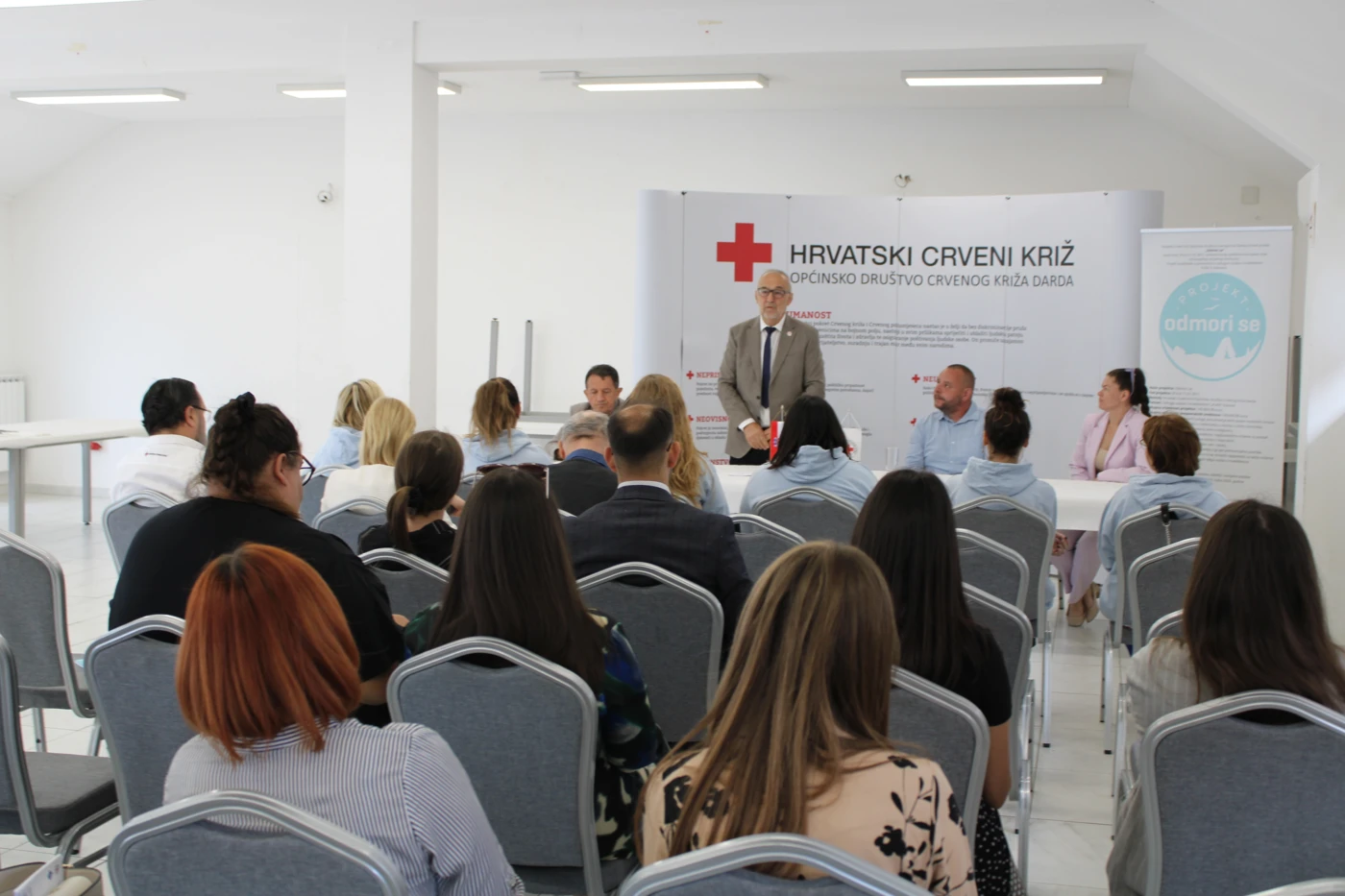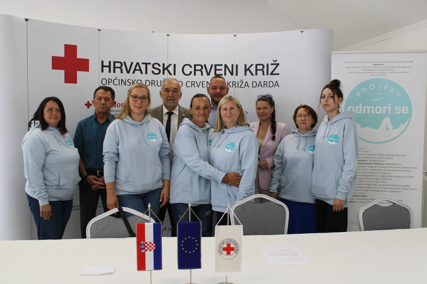 U četvrtak, 10. srpnja 2025. godine, održana je uvodna konferencija projekta “Odmori se” čiji je nositelj Općinsko društvo Crvenog križa Darda s partnerom Udrugom osoba s invaliditetom VUKA iz Vukovara. Na konferenciji smo predstavili ciljeve i glavne aktivnosti projekta, a trajanje projekta je od 16. travnja 2025. do 16. rujna 2026. godine. Projekt je usmjeren na razvoj i pružanje inovativnih socijalnih usluga roditeljima njegovateljima i njegovateljima osoba s invaliditetom. Kroz ove usluge želimo pružiti potreban odmor i podršku roditeljima njegovateljima i njegovateljima, s ciljem očuvanja njihove psihofizičke stabilnosti, ali i podizanja kvalitete života krajnjih korisnika. Naš projekt „Odmori se“ još je jedan korak u smjeru razvoja kvalitetnih, održivih i dostupnih socijalnih usluga u lokalnoj zajednici. Ovim putem se zahvaljujemo svim sudionicima konferencije, predstavnicima partnerskih organizacija, medija te predstavnicima Centra za autizam Osijek, Hrvatskog zavoda za socijalni rad PU Beli Manastir te ostalim prisutnima na dolasku i podršci ovom važnom projektu. Projekt Odmori se sufinanciran je sredstvima Europske unije iz Europskog socijalnog fonda plus.